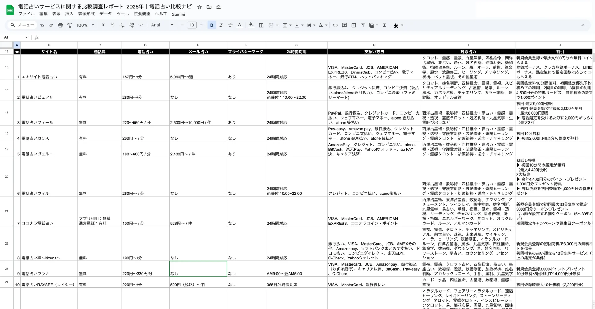 結論、24社を対象とした調査をもとにした、おすすめな人気電話占いは以下のとおりです。