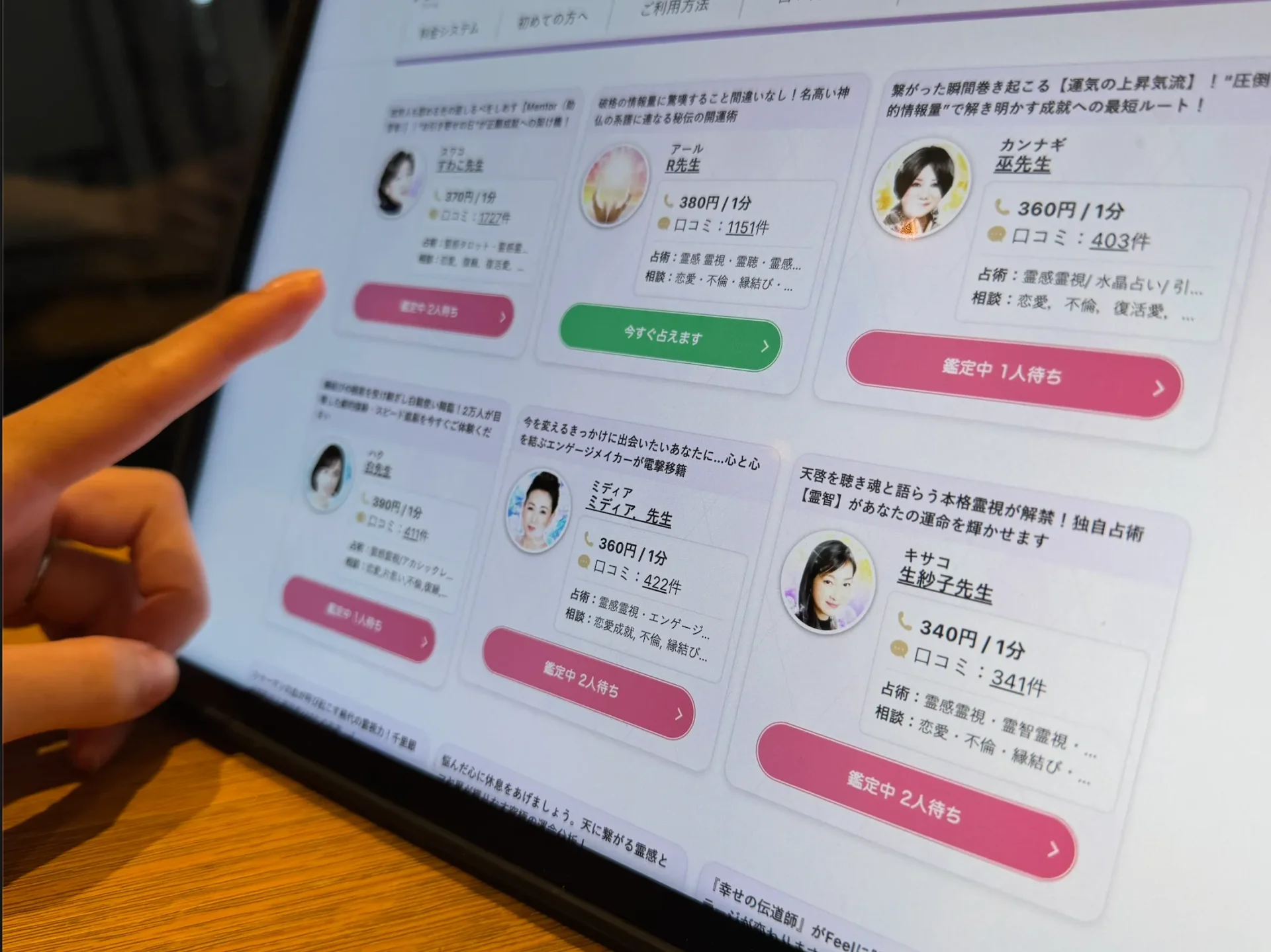 • 鑑定料:占い師ごとに設定(例:1分220円〜)